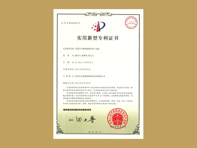 熱泵果蔬烘干單位證書