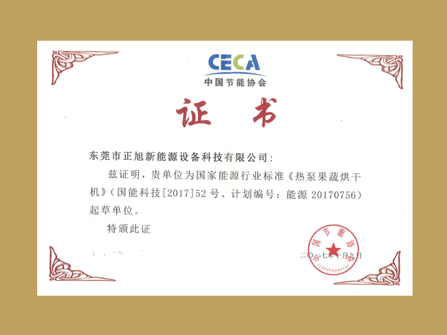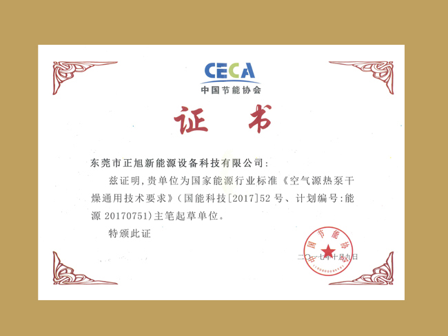 空氣源熱泵干燥起草單位證書