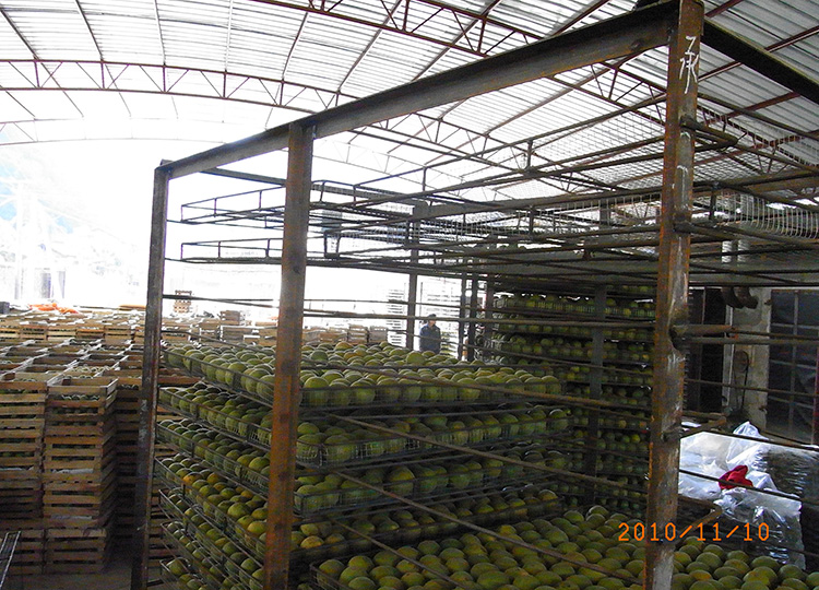 廠家原來大多采用柴火烘干窯,烘干時間較長,大火需要6~8天,小火則需10天左右,柴火烘干成本(含人工成本)約為5~6分錢一個果。