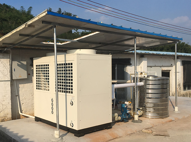 該養(yǎng)殖場豬舍約700㎡(以保育、育肥為主),根據豬舍采暖需求、基建情況、當地氣候等因素,采用正旭超低溫空氣源熱泵組。新建豬棚的末端是地暖,改造豬棚的末端是風機盤管,(為了供應小豬們飲水,冬季采暖的同時在采暖管路上做了一個換熱器,出水溫度可達30度熱水);該方案的優(yōu)點為:采暖溫度均勻、升溫快,棚內達到初始溫度35℃,而后逐漸降低且保持在20-25℃的效果,完美適配豬只不同生長發(fā)育階段,維持穩(wěn)定養(yǎng)殖周期。