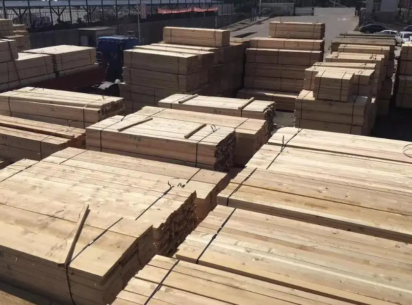 1. 木材堆兩邊板材變形