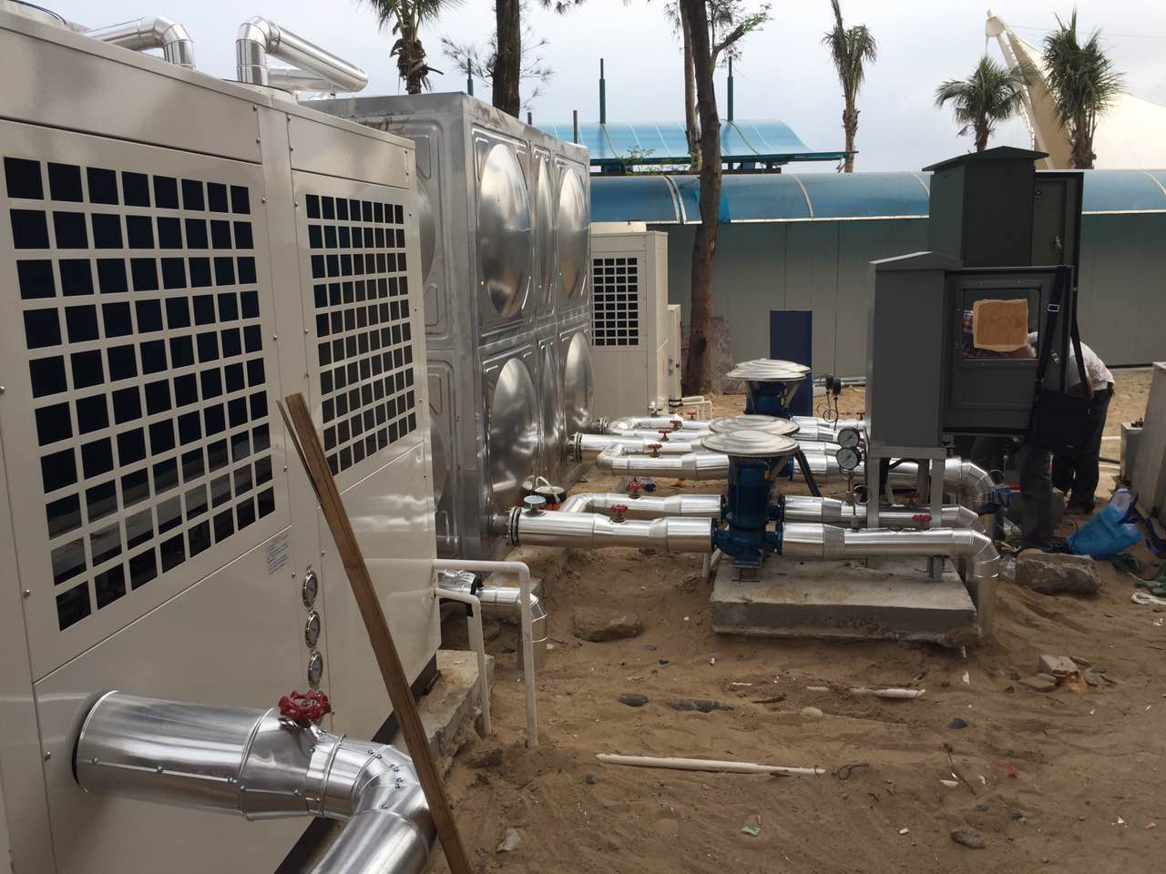 超低溫空氣源泳池?zé)岜脵C組,滿足南北方的泳池恒溫需求。