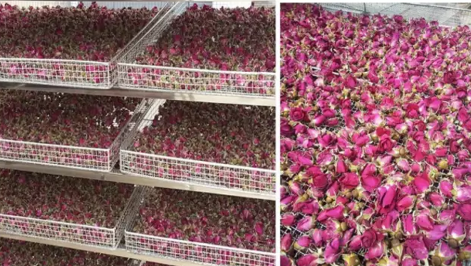 1、低溫除濕烘干,不破壞玫瑰花營養成分,可回收玫瑰花精油;