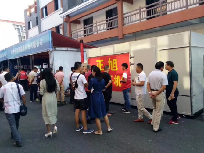 展會期間,正旭工作人員裝統(tǒng)一,精神抖擻,忙碌于展臺左右為客戶推介宣傳產品。現(xiàn)場,正旭熱泵烘干分體機帶烘房演示,吸引了眾多客戶前來詢問,正旭工作人員們進行詳細講解。