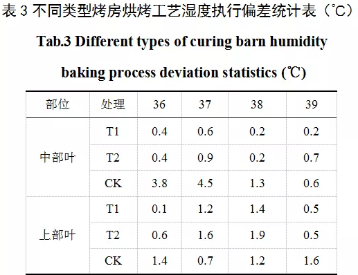 在溫度達到38℃、42℃、47℃(中部葉)和48℃(上部葉)、54℃時,測定實際溫濕度與目標溫濕度的偏差。