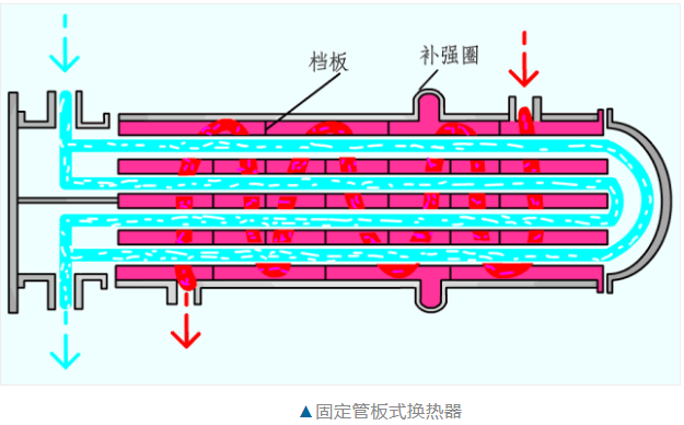 固定管板式換熱器是管殼式換熱器的一種。固定管板式換熱器兩端的管板采用焊接的方式與殼體連接,主要由外殼、管板、管束、頂蓋(封頭)等部件構成。