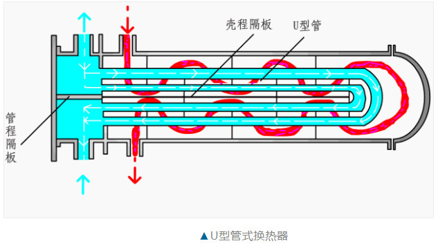 U形管式換熱器是管殼式換熱器的一種,它由管板、殼體、管束等零部件組成。U型管式換熱器的每根管子都彎成U型,進出口分別安裝在同一管板的兩側,封頭用隔板分成兩室,由此,每根管子都可以自由伸縮,而與其他管子和殼體無關。