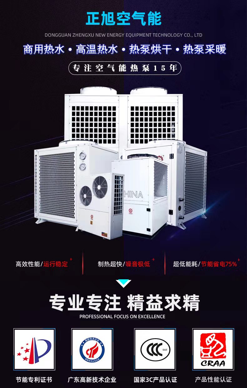 加速推進綠色建筑普及,空氣源熱泵技術應用必不可少!以我國空氣能領軍品牌—正旭生產的空氣能熱泵產品為例,該款熱泵充分運用逆卡諾原理,創造了熱水、熱風、冷、暖、供給系統突破的奇跡,此外,正旭空氣能熱泵供暖還具備以下優勢:
