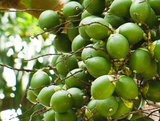 除了藥用價值以外,檳榔還具有較大的經(jīng)濟價值,我國檳榔品種產(chǎn)量高,單株產(chǎn)量可達30kg左右,經(jīng)濟價值高。在我國海南、臺灣、湖南等地群眾自古就有消費檳榔的習(xí)慣,是主要的咀嚼品。僅加工產(chǎn)值就達35億元,提供就業(yè)崗位近20萬個,市場潛力大,隨著科學(xué)技術(shù)的注入,深加工產(chǎn)品種類豐富,消費市場逐漸擴大,市場前景一片光明。
