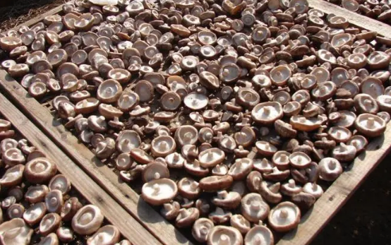 2. 將香菇在35℃的烘干房內烘干1-4小時,使其含水量降低15%-20%,將進氣孔和排氣孔全部打開,一般每小時溫度升高1-2℃,溫度腰逐步升高至40℃左右;