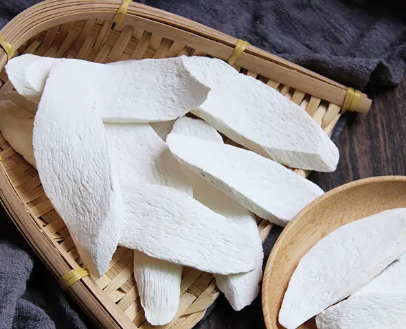 3. 將烘干房溫度控制在46-48攝氏度之間,烘干3-4小時,注意溫度和濕度不宜過高,高溫高濕環(huán)境容易使山藥片變色;