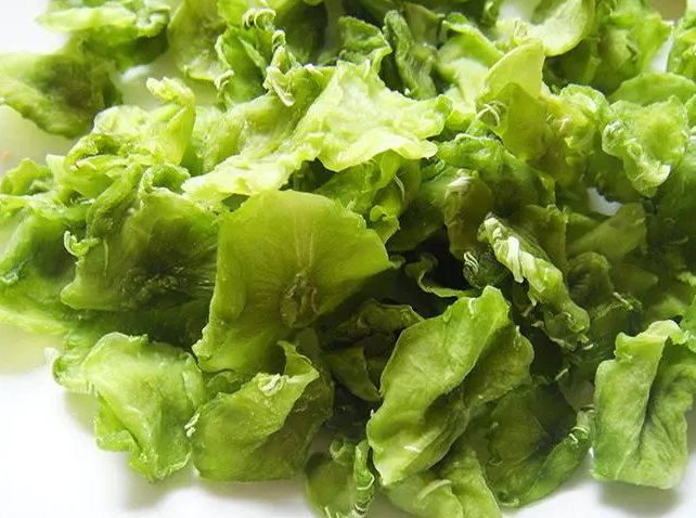 7. 繼續升溫至65-75攝氏度之間烘干2-3小時,直到萵筍片含水率在10%左右,即為干燥完成。