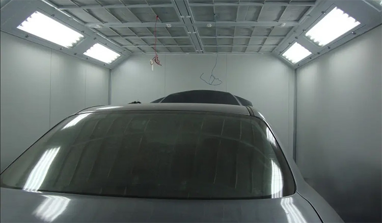 我們先來了解一下傳統4S店的烤漆操作要點。首先對車身進行膩子打磨。膩子的打磨工作往往在距離烤漆房很近的區域進行,但是打磨膩子會產生大量粉塵,隨著空氣的流動膩子粉塵會進入烤漆房,最終導致嚴重污染。因此,膩子打磨工作應該在遠離烤漆房的區域進行,同時,在不使用烤漆房時,應該將烤漆房的門關好,避免使烤漆房的門長時間處于打開的狀態。