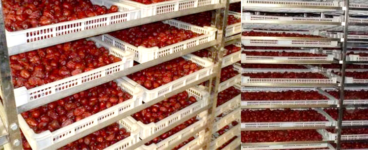3. 經(jīng)過蒸發(fā)階段后,棗內(nèi)水分已不多,應(yīng)該將烘干房溫度降低,以50攝氏度為佳,隨著棗內(nèi)水分逐漸平衡,也就達(dá)到烘干目的了;