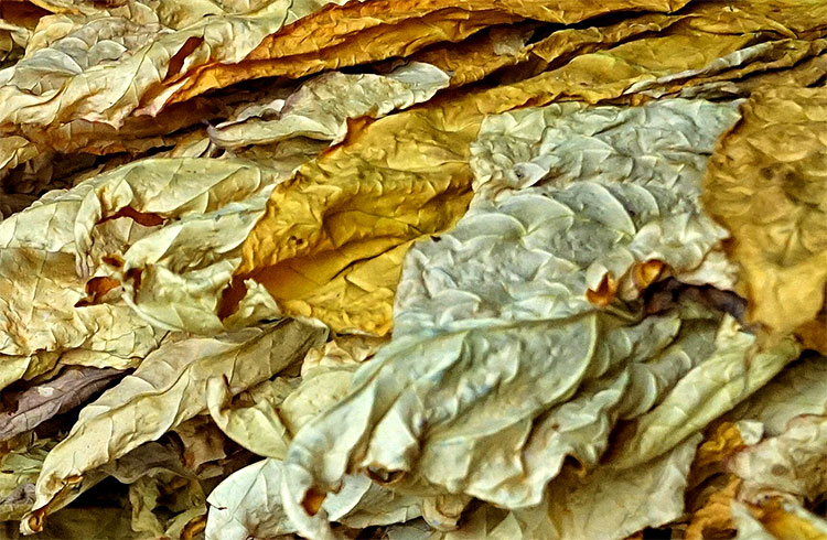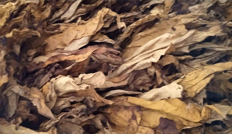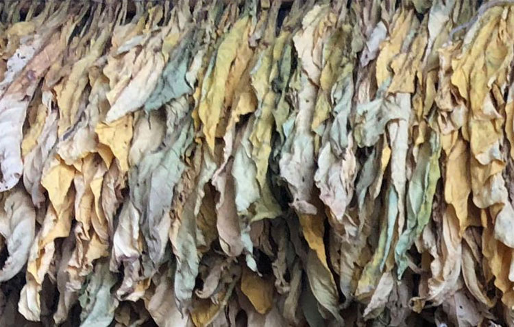 1、采收的煙葉成熟過度,形成田間鮮煙掛灰,且上部葉采收時葉數少。煙葉成熟過度,水分含量少,進入烘房烤制時會提前脫水而出現干葉被再烘干的情況,最后就導致煙葉呈現灰色狀。