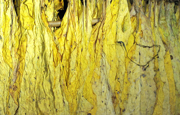 2、煙葉水分過多,變黃期煙葉只變黃不凋萎,形成“硬黃煙”導致“捂水”變黑。這種情況需要分類編竿,做到同層同質裝煙稀密得當。