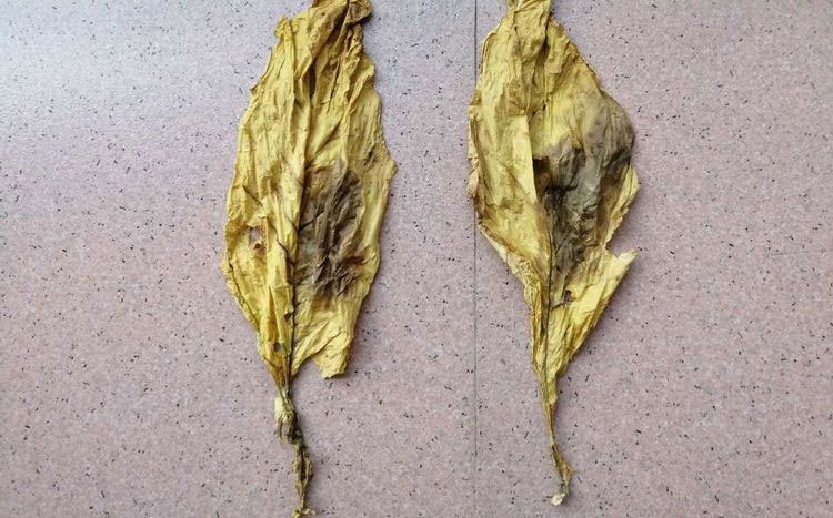 現象:烤制出的煙葉部分呈黑褐色,油分差,單葉重較輕,品質低劣,幾乎無使用價值。